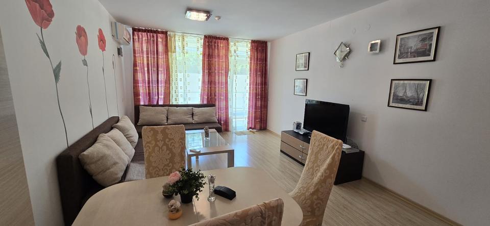 Zum Verkauf steht eine großzügige und vollständig möblierte 2-Zimmer-Wohnung in erster Meereslinie im begehrten Komplex „Silver Beach“ in Byala, nur 50 Meter vom feinsandigen Strand entfernt.