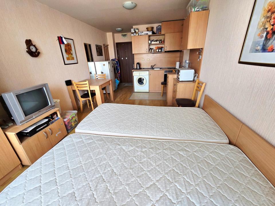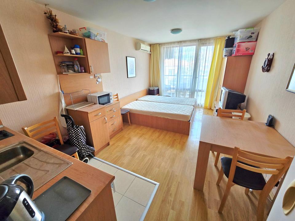 Zu verkaufen: Studio im Komplex Vigo, Nessebar — TOP-LAGE! Zum Verkauf steht ein gemütliches Studio mit 39 m² und Terrasse in einem der beliebtesten Komplexe im neuen Teil von Nessebar — Vigo.