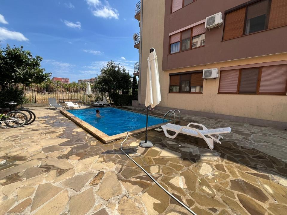 Wir bieten zum Verkauf eine sehr gepflegte Dreizimmerwohnung, gelegen im 4. Obergeschoss (ohne Aufzug) eines Wohngebäudes mit Swimmingpool, nur 200 Meter vom wunderschönen Strand entfernt.