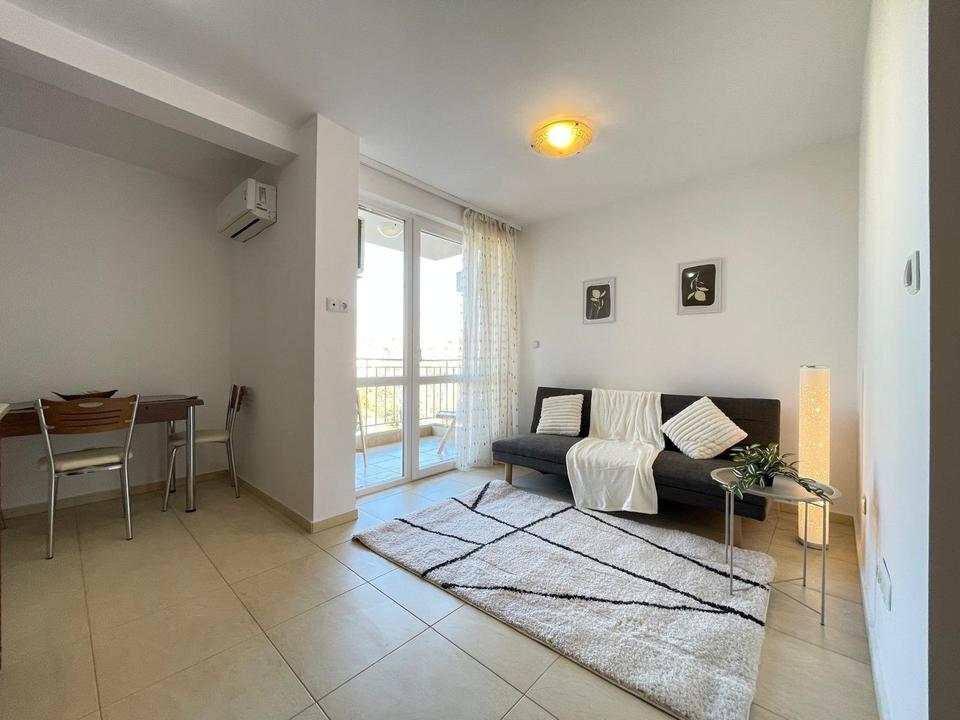 Wir bieten ein gepflegtes und gemütliches Studio im beliebten Acapulco-Komplex in Sunny Beach zum Verkauf an. Die Wohnung befindet sich in der 4. Etage eines sechsstöckigen Gebäudes und ist bequem per Aufzug erreichbar.