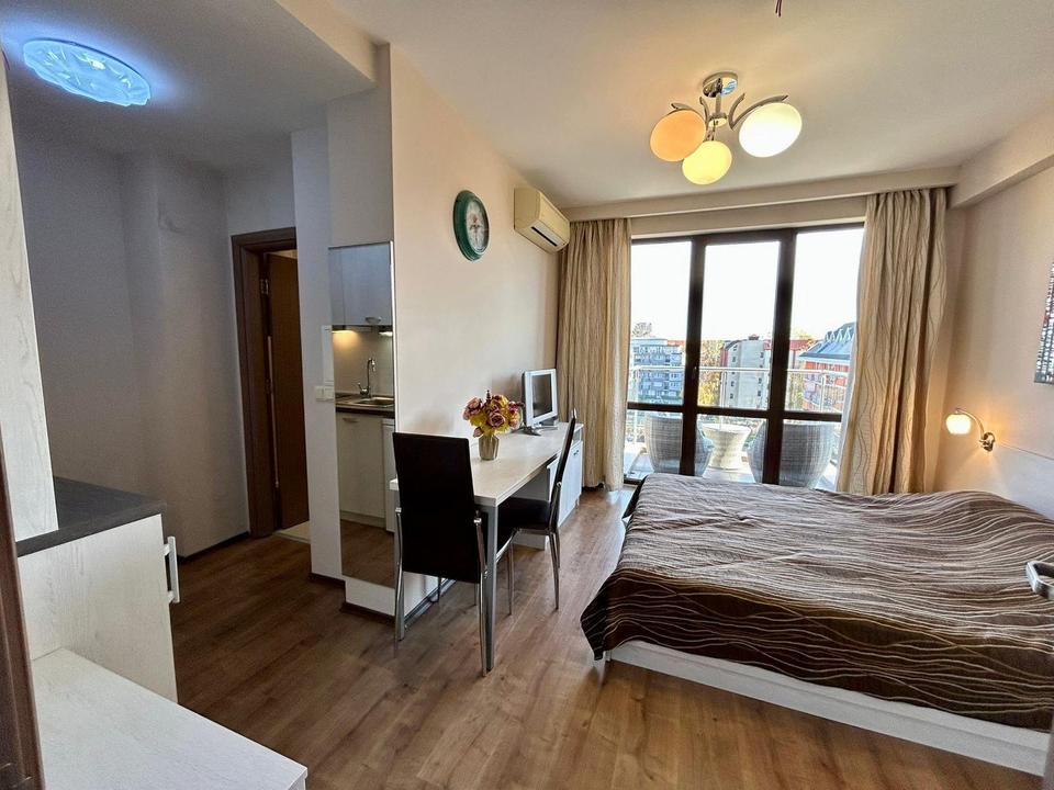 Wir bieten Ihnen ein geräumiges Studio mit Fernblick im beliebten Tarsis 3 Komplex in Sonnenstrand, Bulgarien.