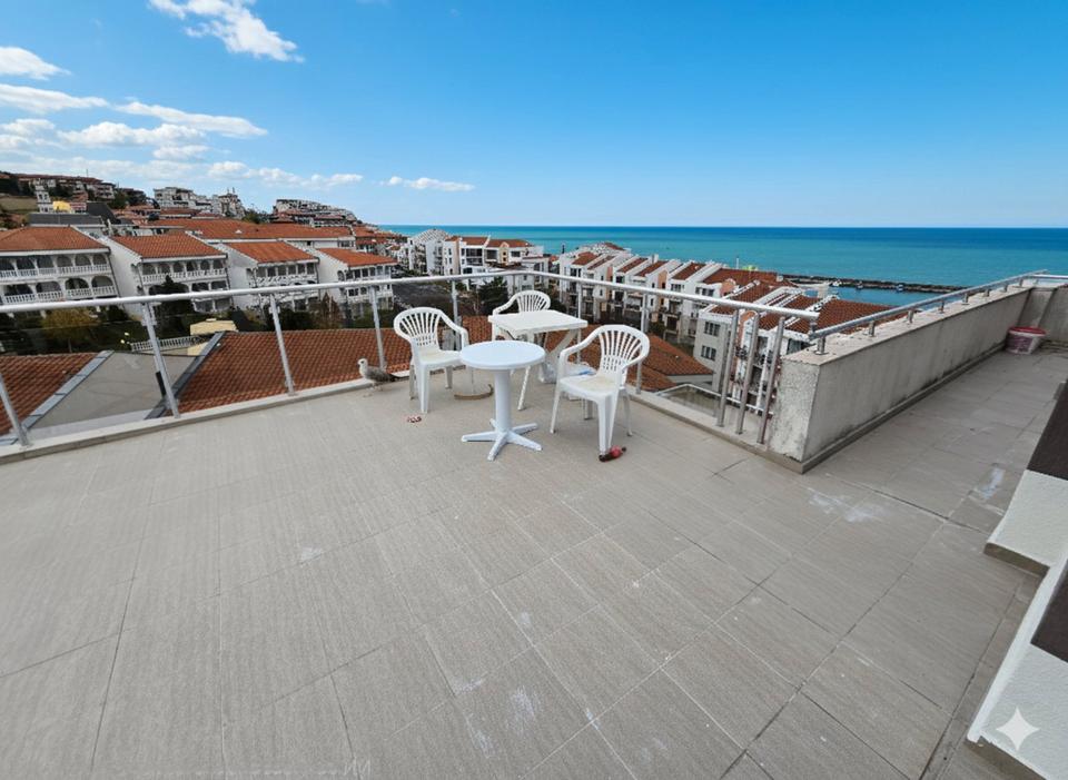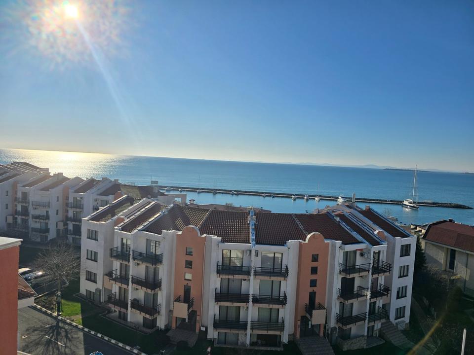 Wir bieten Ihnen eine attraktive 2-Zimmer-Wohnung mit Meerblick im gepflegten Wohnkomplex Lazur im renommierten Badeort Sveti Vlas, Bulgarien an. Die Wohnung befindet sich in der 4. Etage von 4 und überzeugt durch ihre ruhige Lage sowie eine großzügige Terrasse mit herrlichem Blick auf das Meer.